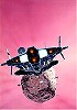 Raumsoldaten vor Raumbooten und Wolke am Horizont, aus der Schattenfigur aufsteigt |