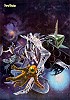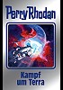 Haluter, Terraner und Flugroboter, im Hintergrund Kugelraumer |