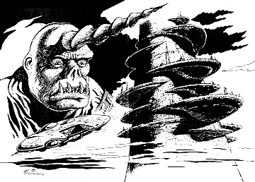 Dscherro - grünhäutiger Humanoider mit gedrehtem Horn und Hauern |