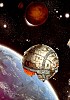 Kugelraumschiff der MERZ-Klasse mit fehlendem Segment über Energiering |