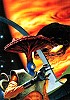 Außerirdischer mit Kegelkopf und Zyklopenauge, davor Space-Jets |