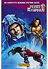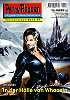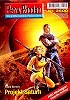 Perry Rhodan und Frau mit Speer nach vorn blickend, dahinter Mond, am Himmel Polyport-Hof |