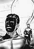 Außerirdischer mit länglichem Kopf und rotbrauner Gesichtsfarbe |