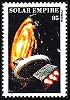 Kugelraumschiff und Pyramide in Sandmeer unter sternklarem Himmel |