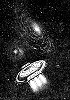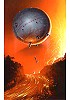 Kugelraumschiff wird beschossen und erhält Treffer an der rechten Unterseite |