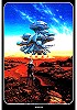 Mann in Felswüste blickt auf fremdartiges Raumschiff |