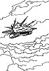 im See gestrandetes Raumschiff, von Dinosauriern und Flugsaurier umgeben |
