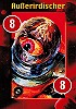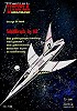 kleines Raumboot mit kugelförmiger Kanzel und seitlchen Flossen vor roter Sonne mit Protuberanzen |