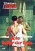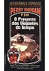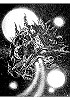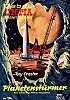 Saurier mit aufgerissenem Maul und Außerirdischem/Mann in den Vorderpranken |