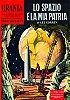 startendes Kugelraumschiff mit aus Düsen austretenden Feuerschweifen |