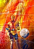 Mann spielt mit Kugeln, die durch Fäden verbunden sind |