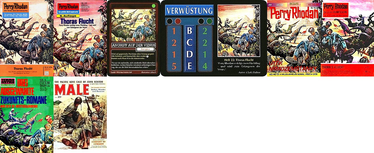 ähnliches Motiv, 1 - 6 gleiches Bild, 6 seitenverkehrt, 7 Neuinterpretation für HC-Ausgabe, 9 und 10 gleiches Bild |