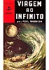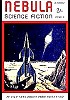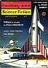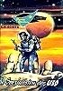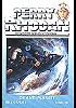 rufender Raumfahrer mit Waffe in der Hand, im Hintergrund Raketenraumschiff |