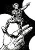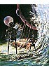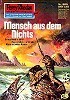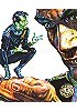 Außerirdischer bzw. Terraner auf Felsklippe, der von Raubsaurier bedroht wird |