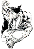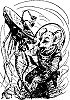 Löwe und Kämpfer in Körperhaltung fast identisch, nachgezeichnet |