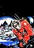 knieender Raumfahrer mit transparentem Kugelhelm |