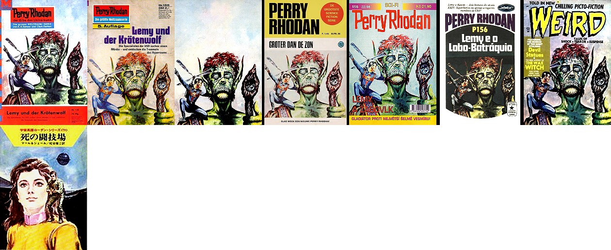 1 - 7 gleiches Bild, 8 Neuinterpretation für japanische Ausgabe des gleichen Romans, wobei Frau statt grünhäutigem porträtiert wird |