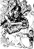 Bär/Monster/Haluter über liegendem Außerirdischen/Mann, s. auch Bsp. 6 und 216 |