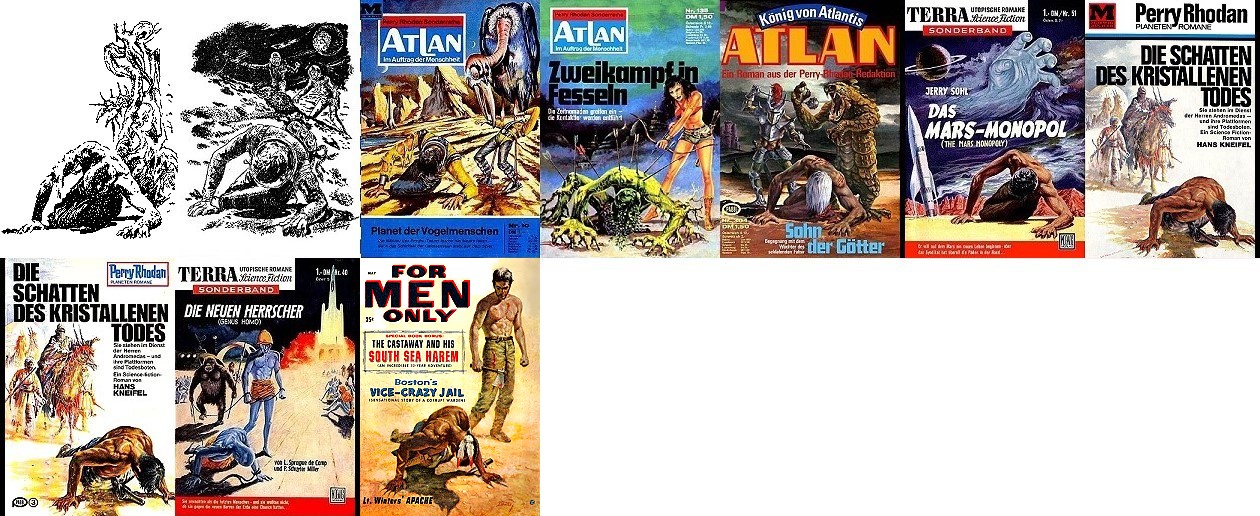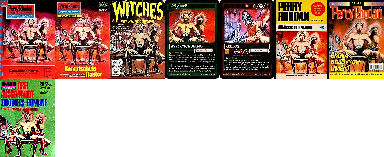 1 - 7, 9 - 10 gleiches Bild, Mann sehr ähnlich, Hintergrund unterschiedlich, 11 Ploohn für japanische Ausgabe nachgezeichnet |