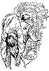 vogelförmiger Außerirdischer mit Terraner auf Schultern |