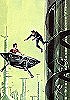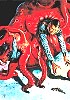 liegender Mann mit ausgestreckter/herabhängender Hand und Insektenwesen (Ploohn) |
