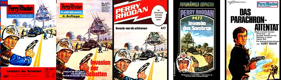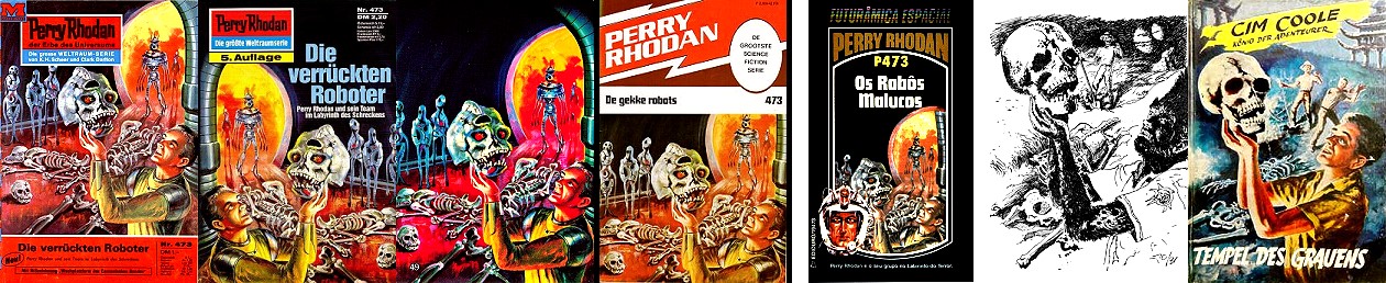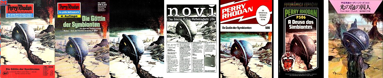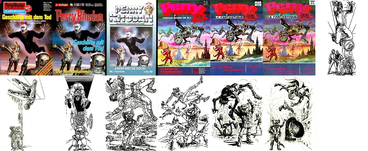 1 bis 7 gleiches Bild, 6 und 7 seitenverkehrt, 7 für Hardcoverausgabe nachbearbeitet (anderes Raumschiff, aber Hintergrund gleich), 8 und 9 gleiches Bild, ähnliches Motiv wie 1 |