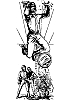 1 - 5 gleiches Bild, gefesselter Mann in 6 - 8 sehr ähnlich, 9 Vorbild für an den Pfahl gefesselten Mann, 10 für Frau mit Waffe |