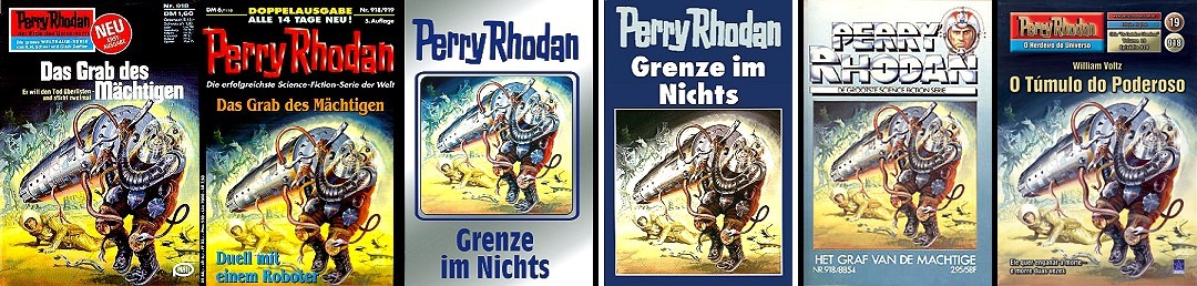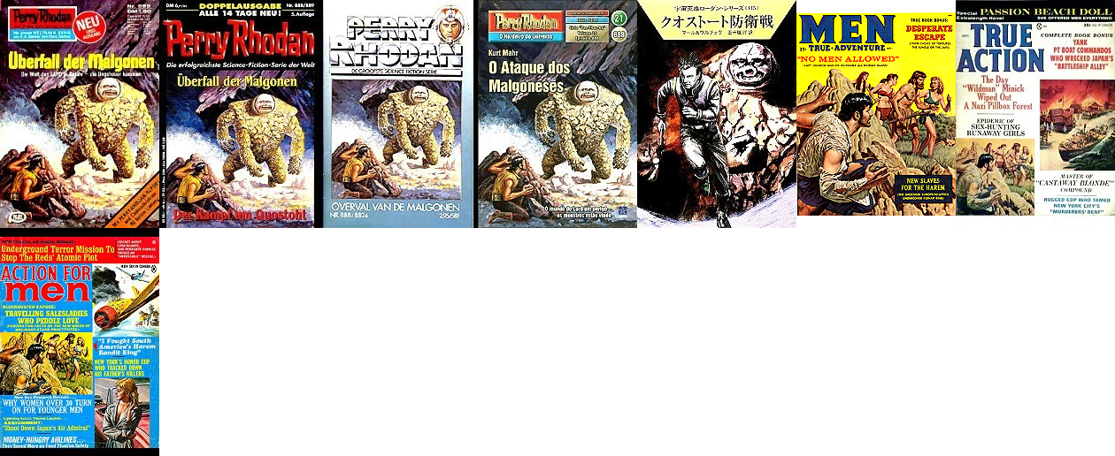 1 - 4, 6 - 8 gleiches Bild, in 5 Malgone für japanische Ausgabe nachgezeichnet, Terraner und Felsblock in 1 von 6 nachgezeichnet |
