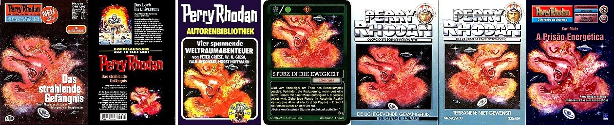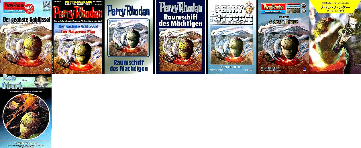 1 - 6 gleiches Bild, 3 in 3D, 7 Nachzeichnung für japanische Ausgabe, 8 Raumschiff aus 1 als Collage über- nommen |