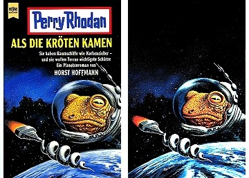 Krötenwesen und schraubenzieherförmiges Raumschiff |