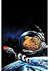 Raumfahrer mit ausgestrecktem Arm und angewinkeltem Bein |