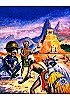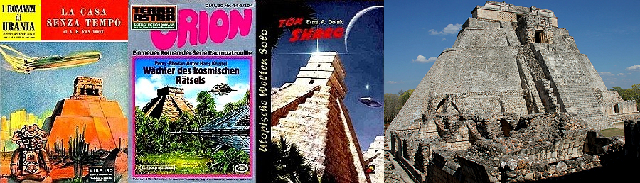 Stufenpyramide mit Kugelraumschiff, Raumfahrer und Eingeborenen |