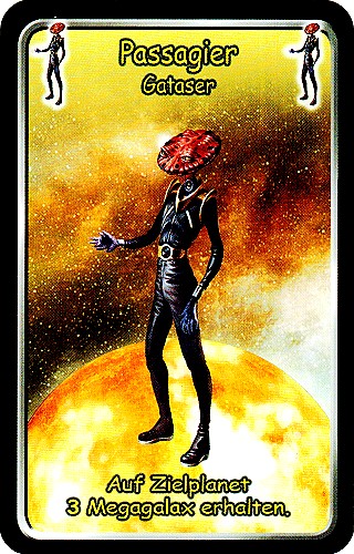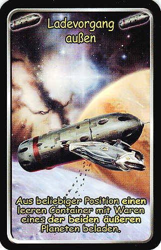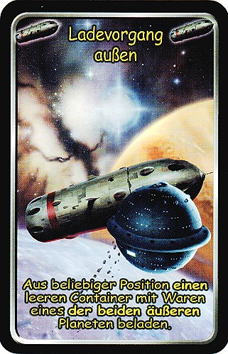 1 Sonnenscheibe2 Raumschiffe (mit Aufstellern)2 Miniraumer (zum Punktezählen) 1 Würfel6 verschiedene Planetenscheiben30 Warenkarten (mit versch. Waren auf jeder Seite)60 Raumschiffkarten (2 Sätze mit je 30 Karten)