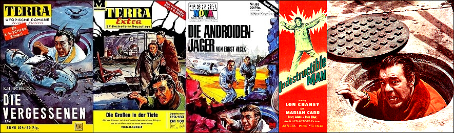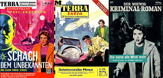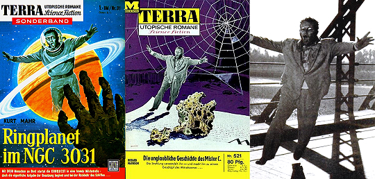 gezeichnet war, wird im Terra-Heft farbig, aber mit genau gleicher Körperhaltung gezeigt und erscheint auch in einem Krimi. |
