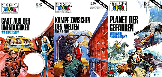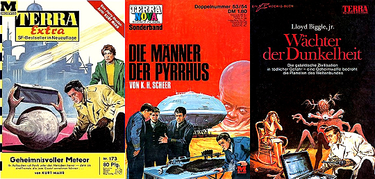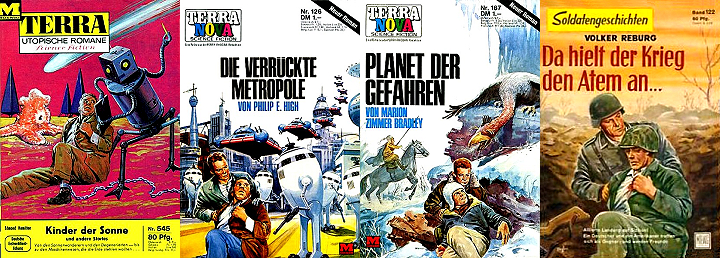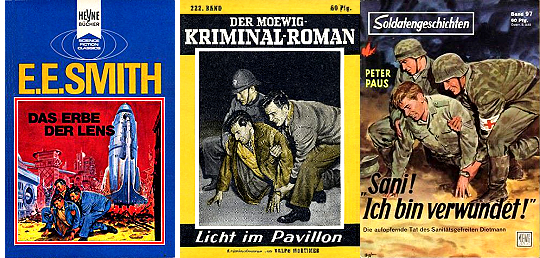 Mann stützen, wurde sowohl für eine Titelgrafik der Heyne SF Classics als auch für einen Moewig Krimi und einen Soldatenroman verwendet. |