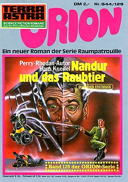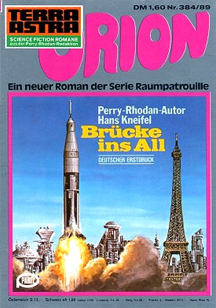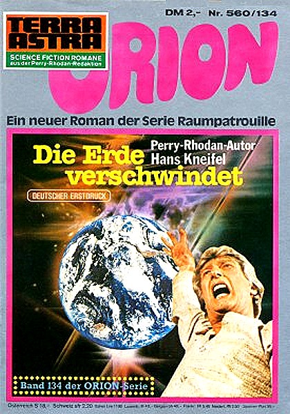 1972 - 1975 wurde die Serie innerhalb der Terra Astra Heftreihe neu aufgelegt, wobei innerhalb der damals wöchentlich erscheinenden Reihe meist jedes vierte Heft ein Orion-Roman war. Die Serie umfasste zunächst die Nachdrucke der 35 Taschenbücher, der laufende Zyklus wurde aber mit bereits vorliegenden, aber unveröffentlichten drei Manuskripten Kneifels weitergeführt und mit drei weiteren neu geschriebenen Romanen vorläufig mit Band 41 abgeschlossen. Die nachgedruckten Romane mussten für die Heftausgabe gekürzt werden. Alle Titelbilder wurden von Eddie Jones gestaltet, dem bis in die 500er-Bände alleinigen Coverzeichner von Terra Astra.