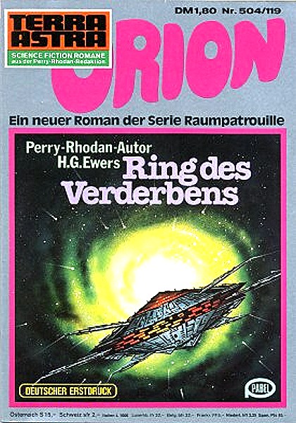 Von September bis Dezember 1966 strahlte die ARD in vierzehntäglichem Abstand die siebenteilige Fernsehserie RAUMPATROUILLE aus. Diese Serie um die Hauptdarsteller Dietmar Schönherr und Eva Pflug wurde von den Bavaria-Studius produziert. Sie spielte in ferner Zukunft und schilderte die Abenteuer des RAUMSCHIFFS ORION und ihrer Besatzung auf dem Patrouillenflug gegen menschliche und außerirdische Angreifer, bis in der letzten Folge sogar eine Invasion der "exoterristischen" Frogs auf die Erde abgewehrt werden musste. Die Serie erwarb bei dem mit Science Fiction-Kost bis dahin nicht gerade verwöhnten deutschen Fernsehpublikum einen legendären Ruf, der bis heute - mehr als 50 Jahre später - nach wie vor anhält.