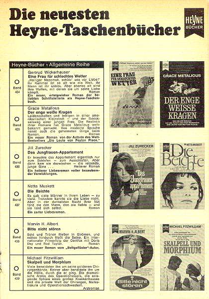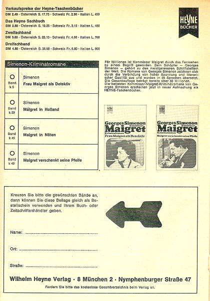 "Der Overhead" von Kurt Mahr 1. Die Titelseite 2. Die letzte Seite mir Werbung 3. Die Beilage in der Heftmitte 4. Einfarbige Beilage vom Heyne-Verlag