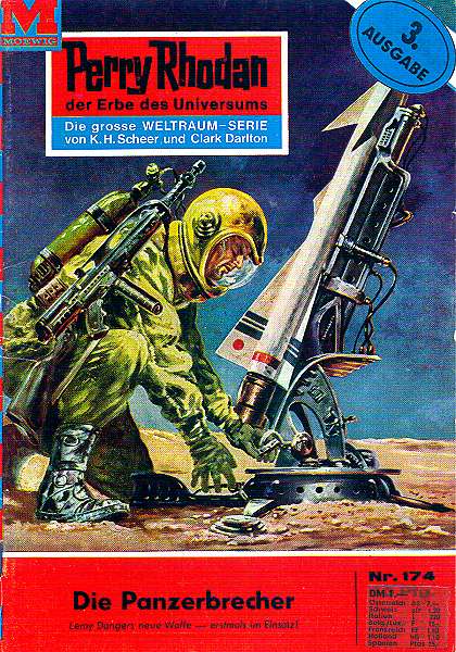 "Die Panzerbrecher" von William Voltz 1. Die Titelseite 2. Die letzte Seite mir Werbung 3. Die Beilage in der Heftmitte 4. Einfarbige Beilage vom Moewig-Verlag Diese Beilage ist noch in der Heft-Nr. 177 erschienen.