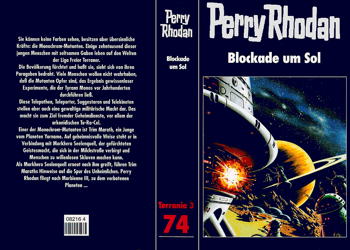 Für die Edition Terrania war übrigens seinerzeit Michael Thiesen verantwortlich. Er hat die Romane ein ganz klein wenig bearbeitet (vor allem Wiederholungen rausgekürzt) sowie jeweils ein Vorwort und eine Handlungszusammenfassung bzw. Einführung ge-schrieben. Letzteres war besonders wichtig, da die Leser der Blaubände plötzlich aus der Epoche des Altmutantenzyklus, also PR 599, und dem zwischengeschobenen Plophos-Zyklus, in die Welt des Bandes 2000ff katapultiert wurden.