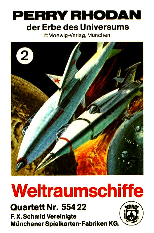 Von den F. X. Schmid Vereinigte Münchener Spielkarten-Fabriken KG wurden von 1969 bis 1970 insgesamt drei verschiedene Quartette zur Perry Rhodan-Serie heraus-gebracht.