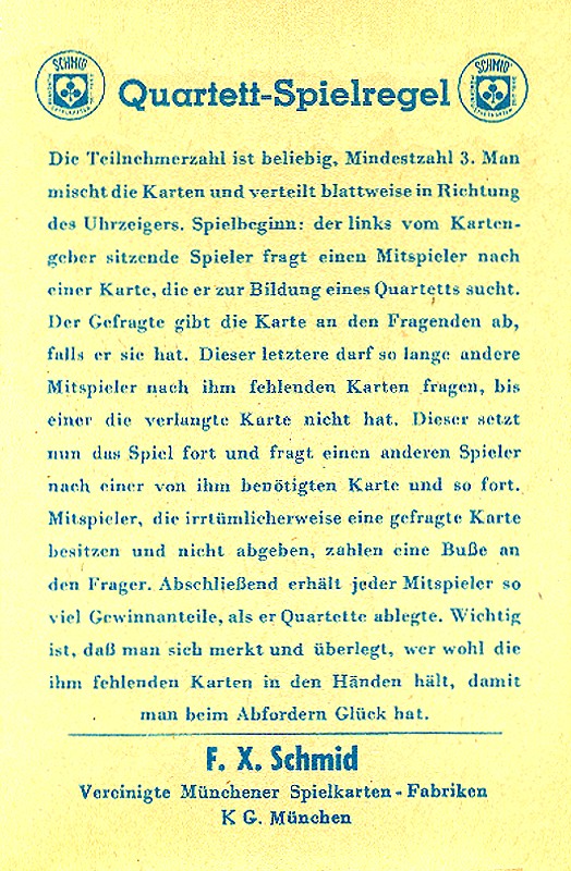 der Reihe "Männer, Technik, Abenteuer" von SCHMIDS Münchener aktuelle Quartette mit den Produktnummern 553 22 und 554 22. Als empfohlener Richtpreis wurde