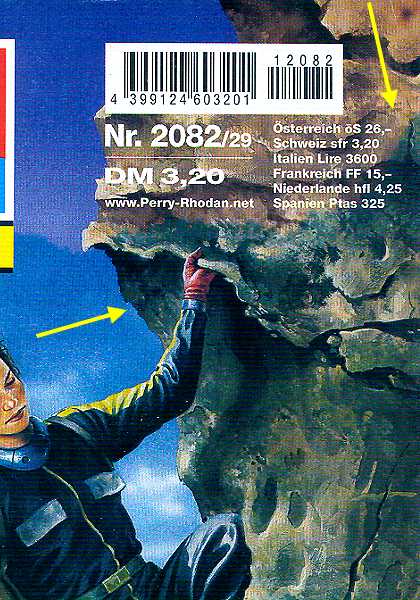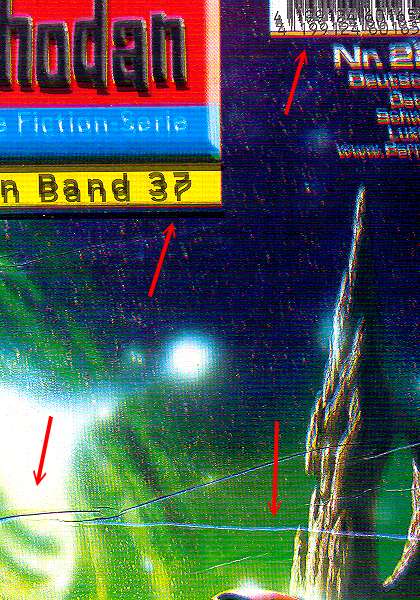 Fehler bei dem Schriftzug "Perry Rhodan" im Logo oben links auf. Sehr markanter Druckfehler.