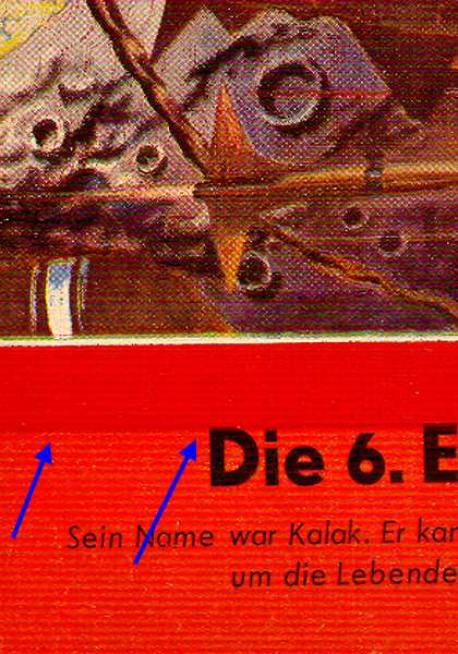 (unter dem Titelbild) erkennbar. Vermutlich war die Farbe Rot auf den Farbwalzen der Druckmaschine nicht ausreichend