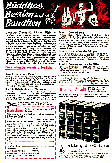 Die Bände Nr. 1 bis 9 kosteten im freien Handel 1,50 DM, ab der Nr. 10 bis zur Nr. 26 nur noch 1,- DM. Außerdem beinhalteten die Nr. 2 und Nr. 21 eine zusätzlich