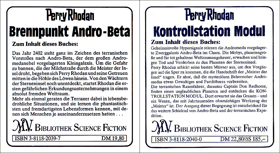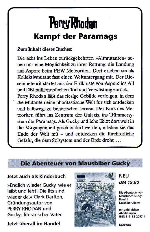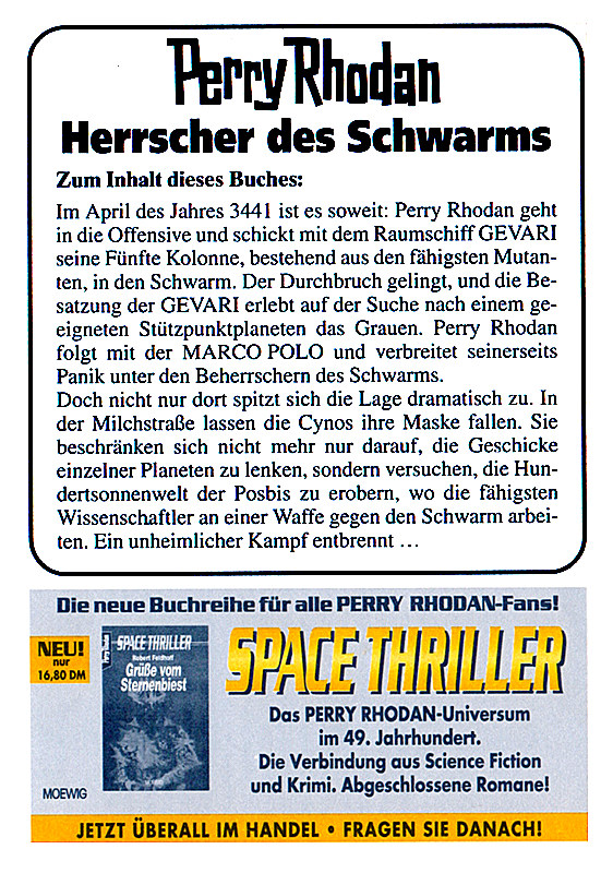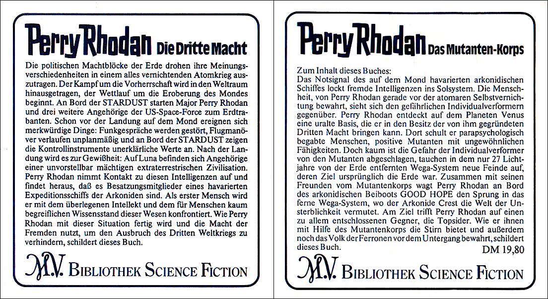Zwischen Buchrückseite und Folie legte der Verlag sog. "Info-Inlets" lose bei. Die Erstauflage eines jeden Bandes bis zur Nr. 99 enthielten